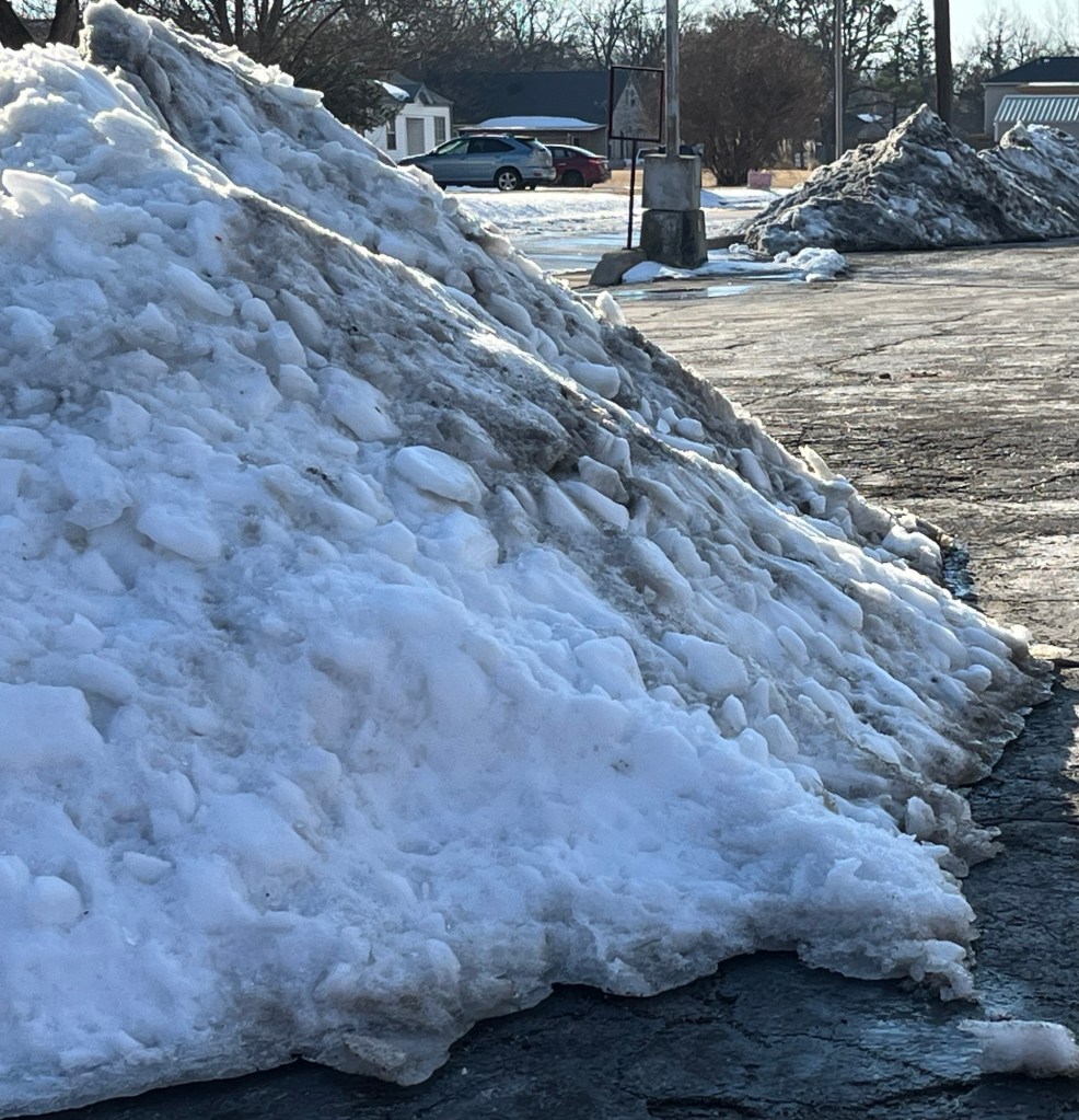 More often than not, when we have a winter storm in Oklahoma, the bulk of the accumulation melts off in just a day or two. It’s taking a little longer this time. While we don’t do as much plowing in our part of the world as in others, there are still these huge piles of snow/ice in places where the roads or parking lots have been (mostly) cleared. Those huge piles are usually dirty, kind of ugly, and they last a lot longer than any of the residual snow and ice around them.